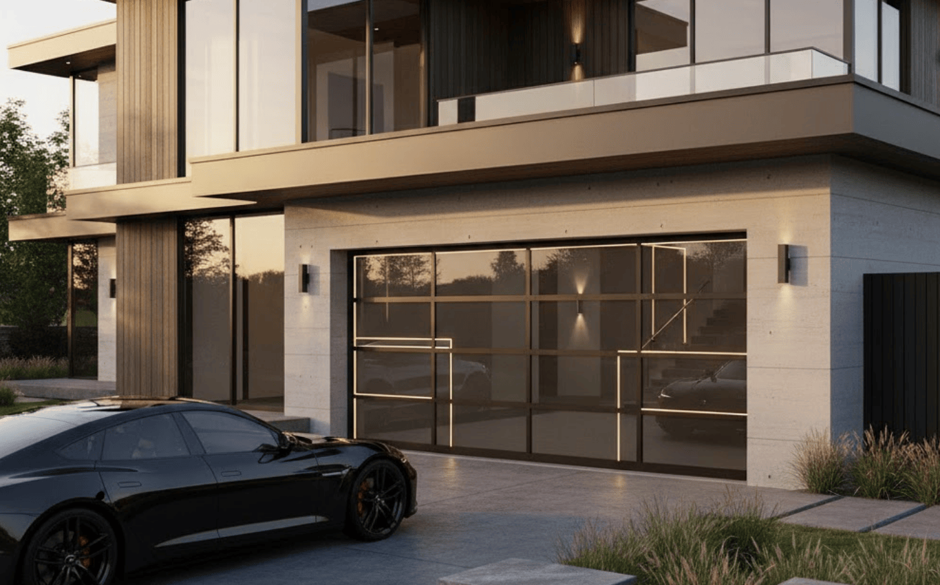 Glass doors bring luxury and natural light into the garage. Paired with advanced garage door openers, they glide open seamlessly while delivering a premium look.