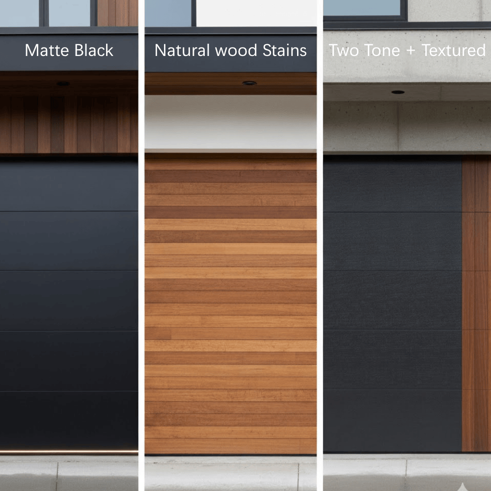 Matte black has become one of the most popular choices in modern architecture. Its smooth, non-glossy surface creates a striking contrast that feels upscale and stylish. When paired with minimalist panels or modern lighting, matte black gives the garage door a sharp, dramatic look that instantly updates the exterior.